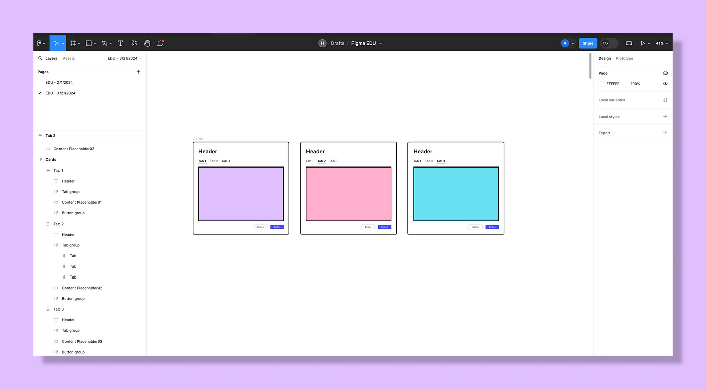This is a useful tool when you need to design several variants of one object. For example, make a design of one button with different elements. To avoid creating a lot of components, use boolean properties. The trick of this function is that it combines many components into one. So you get one component with variants, between which you can switch with a single click.